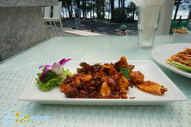 玩累了,我们到沙滩边的小店觅食,不知道是不是过了饭点,每家店都显得很冷清,我们随意选了一家看上去比较干净的,点了特色的泰式炒米粉,芒果糯米饭,炒花枝等,配上椰子奶昔,感觉味道粉不错,价格也还合适,伴着海风品尝了到泰国的第一个正餐,非常满足~