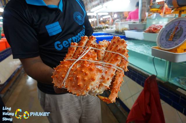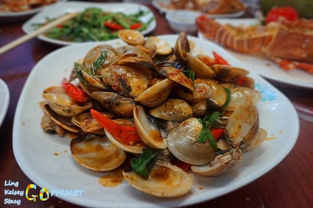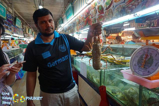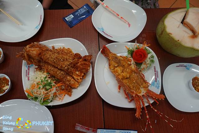 班赞市场就在江西冷旁边,楼下有各种水果生鲜卖,我们随便挑了一家,卖鱼小哥中文不要太好,我们泰铢不够,还说可以收人民币,非常有推销头脑。我们选了龙虾、皮皮虾、青蟹、蛏子,小哥还送了我们花蛤,加上加工费和椰子,大概400人民币,还是比较划算~