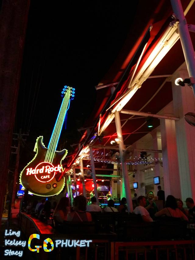 晚上我们和小元汇合,去芭东酒吧街逛逛,感受一下灯红酒绿,看看人妖。不过我们三个女生还是觉得这里有点乱,不敢随便进去喝酒,于是跑去之前看到的Hard Rock Bar 听摇滚、喝鸡尾酒。