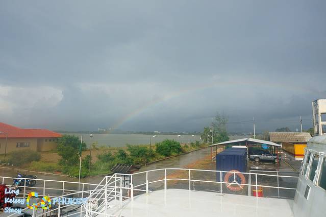 到了码头,雨已经小了很多,天空中还出现了彩虹,让我们的心情略微有些好转~