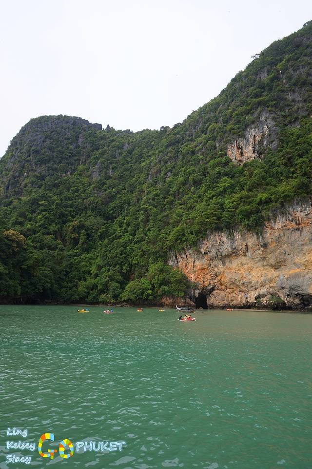 到达攀牙湾,发现景色其实就像我们的桂林,水中立着一座座郁郁葱葱的小山。