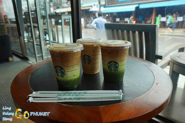 芭东海滩的海和之前奈通、皮皮岛的没办法比了,不过可能也是因为天气的原因。我们也就是随便走走,看到一家星巴克就进去买了当地特色的抹茶咖啡喝,这样的早晨也很悠闲~