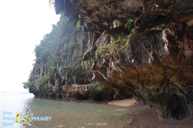 开始玩皮划艇了,我和小鱼单独配了一个划船师傅,非常风趣,他带我们穿过山洞,划到了小山的中间,真是别有洞天,景色秀美,如果天气好就更美了。不过划船师傅很会调节气氛,一会儿让我们看蝙蝠,一会儿看猴子,又故意让山洞的水滴在我们身上,让行程非常有意思,可惜因为怕相机进水,我没怎么照相~