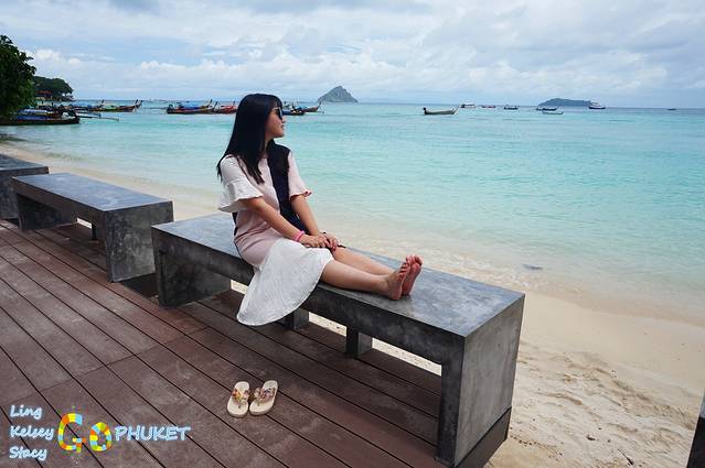 在长尾船上远远的看见酒店我们就兴奋起来了,那细软的白沙,澄澈如“果冻“”一样的海水,实在太美了!我们瞬间就爱上了这里。船上的其他人也兴奋的不得了,一上岸就忍不住开始照照照~