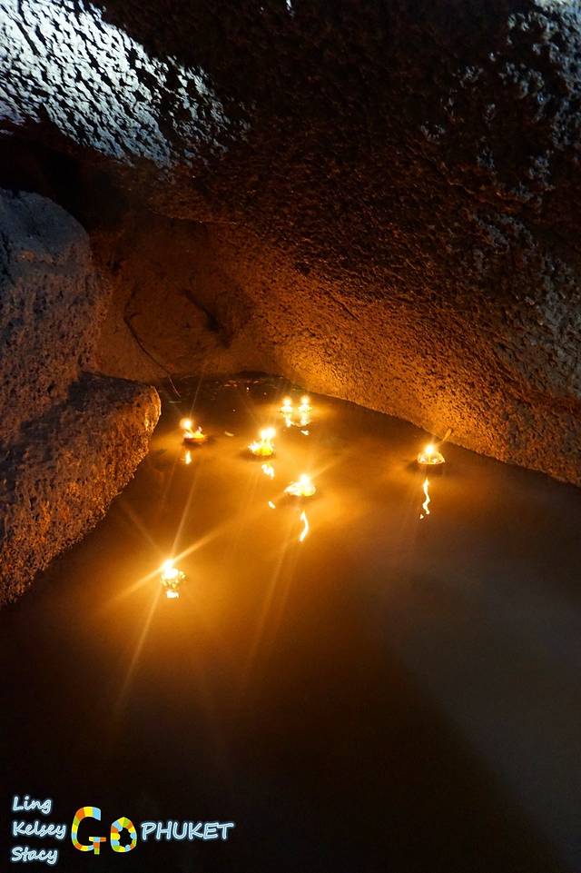 到达下一个山洞,我们要在山洞中放水灯祈福,穿过山洞又是另一片天地,划船师傅一直很照顾我们,帮我们拍照。