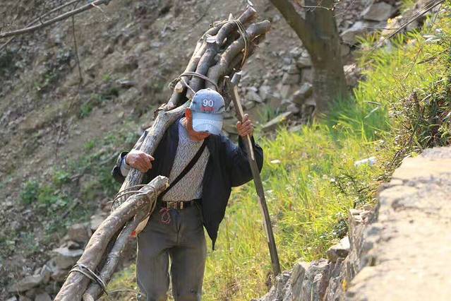 生活真的不容易,古道上的砍柴大叔