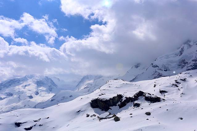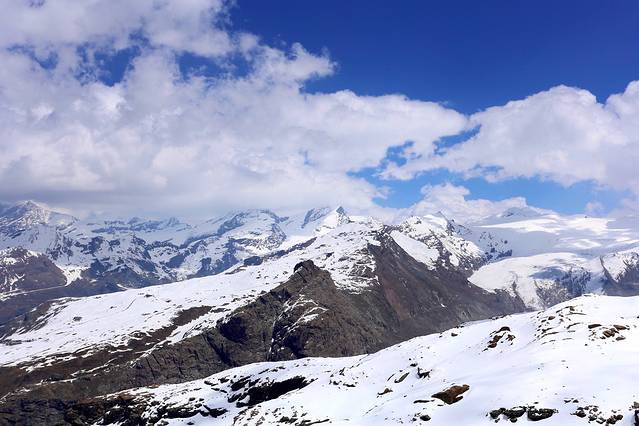 马特宏峰(3段齿轮火车:第二站下车欣赏滑雪道和山峰&第三段下车登戈尔内格拉特观景台俯瞰高山冰河&午餐>山顶餐厅-下山第一站下车游逛采尔马特村庄)-冰山列车-入住洛桑-晚餐>Le Vaudois)