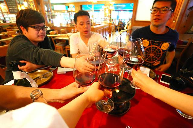 我们这餐开了一瓶红酒庆祝,玩到最后几天的时候,大家的体力已经不能再支持暴走,每天的行程转而轻松、享受~只是没想到是,我们这群人一个激动,微辣敲碎了一个红酒杯,我倒翻了一杯红酒在身上。。真是。。。悲喜交加。。。。。