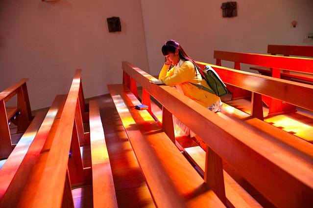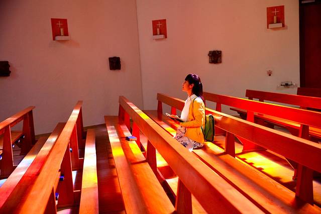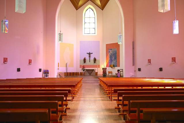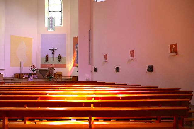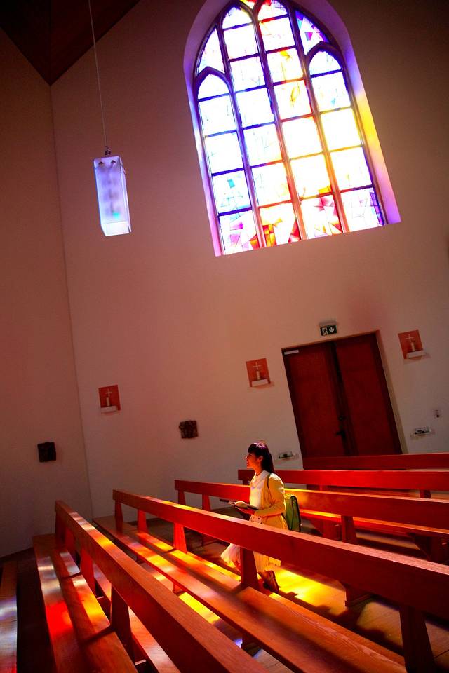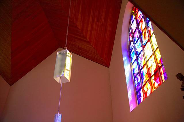 彩绘的玻璃窗,凸肚窗里透着光,装饰着巴洛克教堂。
