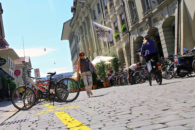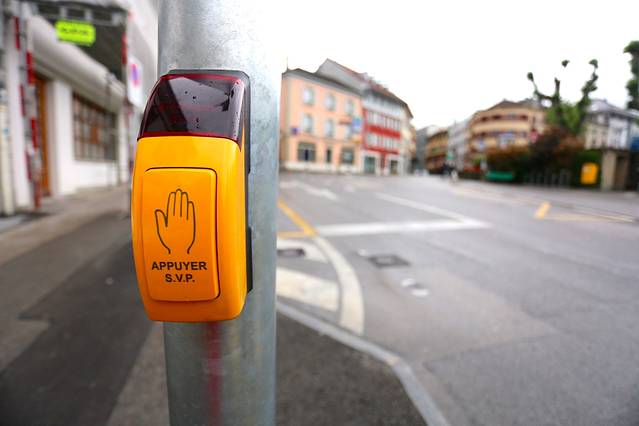 瑞士很多街道没有红绿灯,如果你要过马路记得按一下路边的这个装置,然后过路的司机就会知道要停车等你先过咯~