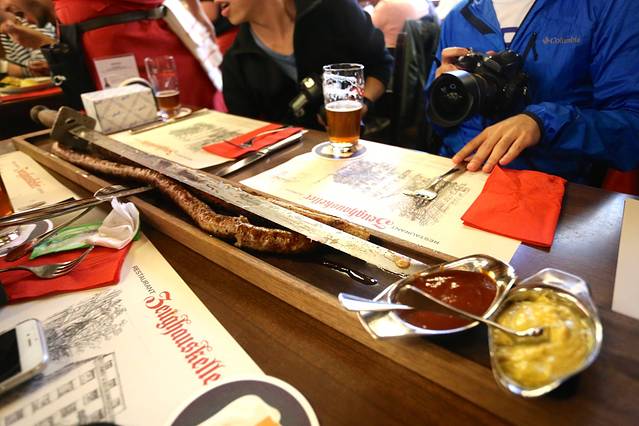 又冷又饿的我们决定在马特洪峰的山顶餐厅吃午餐,因为餐厅里有热空调,可以帮助我们恢复体温~这是斯蒂文斯点的德国香肠和热巧克力~
