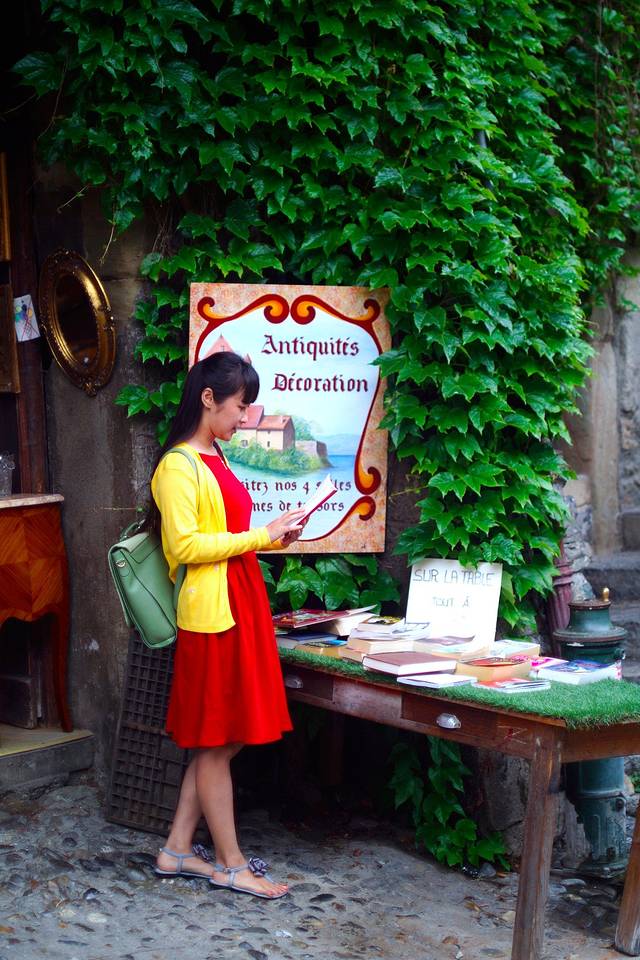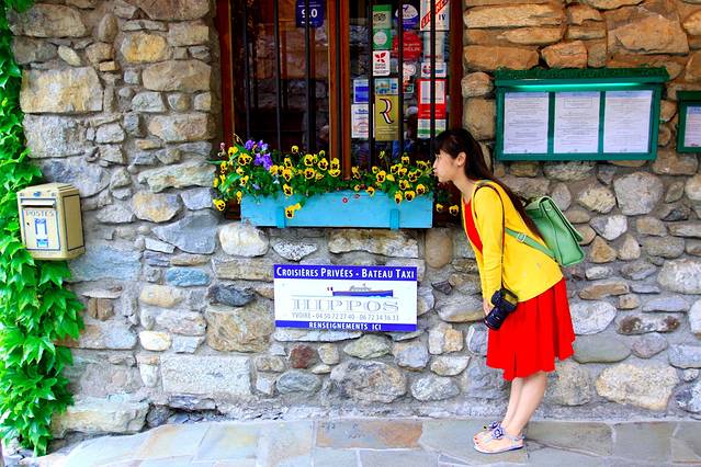 一栋石头屋上看到了Yvoire-伊瓦尔的英文,赶紧上去合个照~