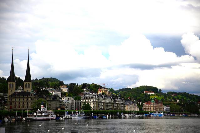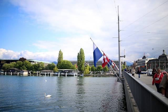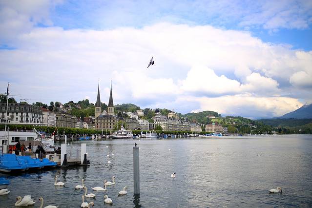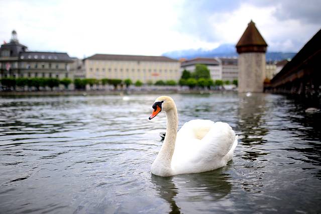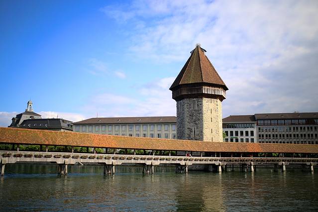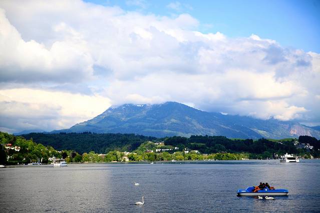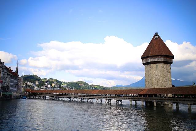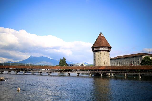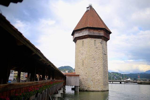 琉森湖,天鹅湖,雨过天晴的卡佩尔廊桥美的自带清新气质~