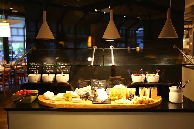 酒店含自助早餐,就在1楼的The Le muh bar酒吧,这个酒吧是一个夜间热点,晚上提供餐厅饮料、DJ之夜和休闲餐饮,早上作为早餐厅。这是此行瑞士早餐最丰盛的酒店。