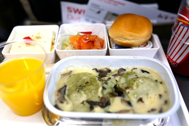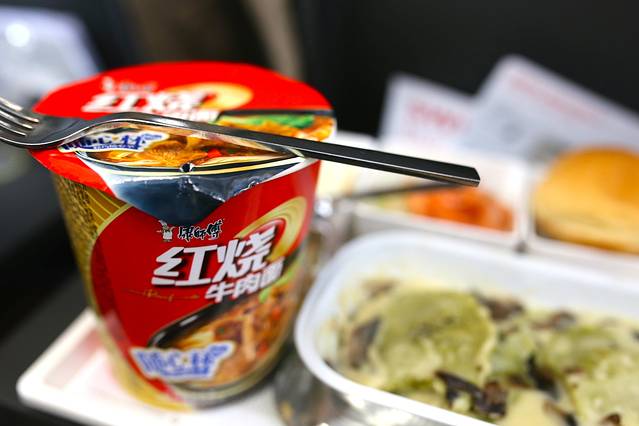 不过对于瑞士航空,还有有不小的失望的,一开始想着毕竟是欧洲老牌航空公司应当是不错,可实际上,瑞航座位非常狭小,餐食也算是黑暗料理,设备也比较老旧,机上没有WI-FI,好多屏幕是坏的也看不了电影,12个小时的飞行时间里比较煎熬。唯一可以安利给大家的就是,瑞航也是有免费提供方便面的,如果吃不惯航司的小伙伴可以像我一样问乘务员要泡面吃~