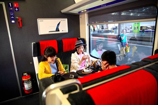 在尼永我们没有再多待,坐上火车回洛桑咯~这是一等座车厢~