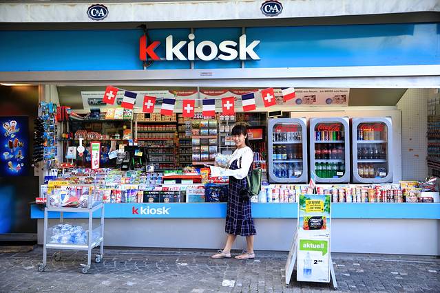 夜晚的洛桑火车站,还是有奥林匹克的标识。本来已经决定回酒店了,结果大家今晚心情都很棒,觉得刚才红酒喝的还不尽兴,提议要不要买一些酒回去继续喝!一致认同后,我们又折回火车站的COOP买酒去了!