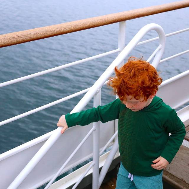 船头处站着一名橘黄亮眼发色的小男孩,这个场景莫名的触动我~