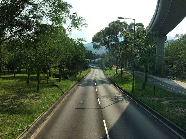 双层巴士最喜欢坐上层第一排,可以看风景