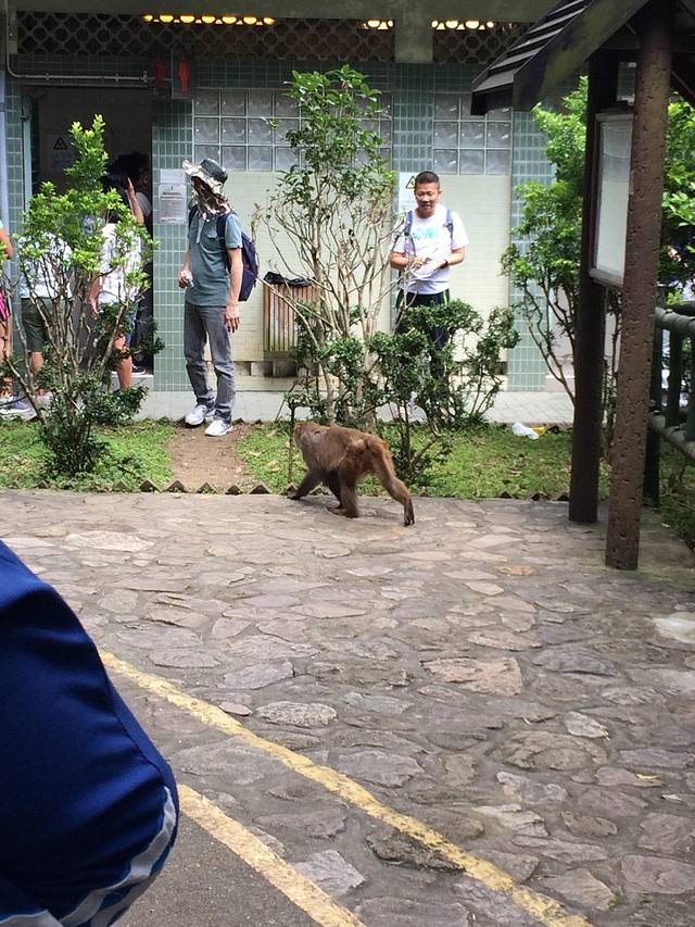下车之后过个马路就看到路牌了M048麦理浩径二段终点!!刚上路,就看见一个猴子威风凛凛的蹲在路边的木桩子上,有游客拿出手机试图拍照,猴哥怒了,呲牙咧嘴冲着大叫,然后跳下来走向公厕方向了。真是土著不能惹!它的地盘它老大!
