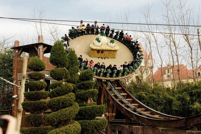 水火动力,也很有名,据说是亚洲最大的绞肉机,看着上面的人拧来拧去的,我的心也好拧巴,下面不仅喷水,最后还要喷下火,真想知道上面的人是一种什么样的感受。