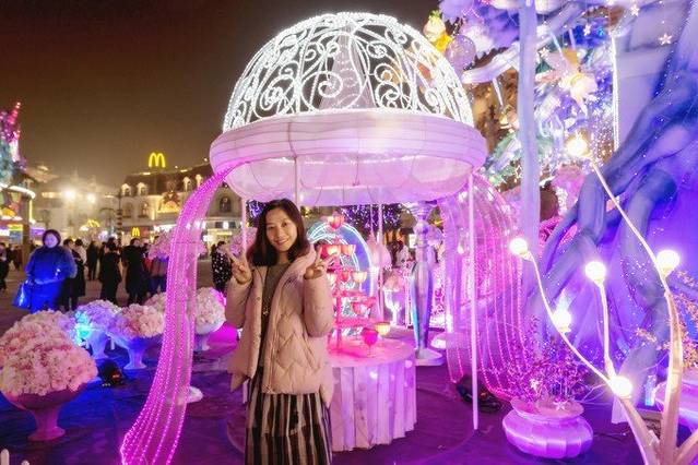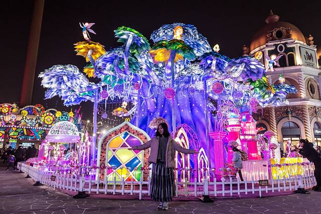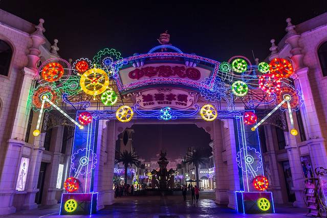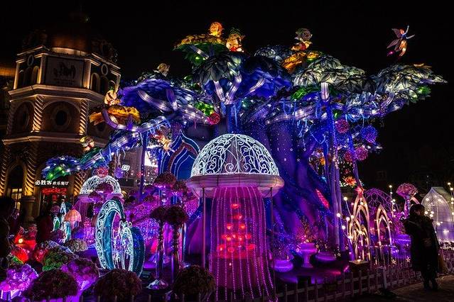 迪诺水镇正在举办新春灯展,五颜六色的彩灯,更映衬的这个小镇梦幻如童话城堡一样。