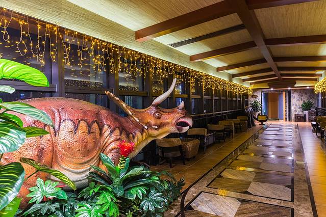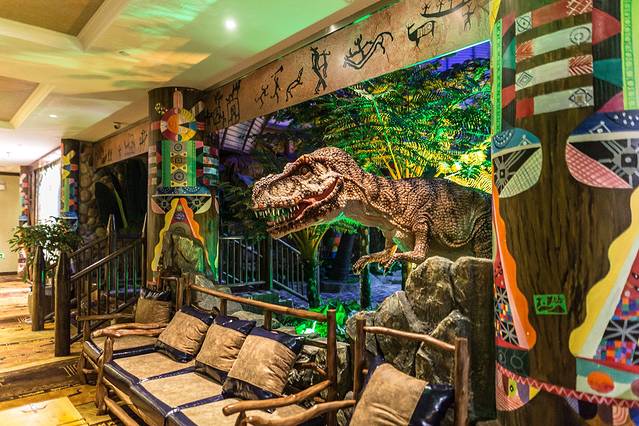 这家也是恐龙主题的酒店,名字和我们那家不一样罢了,条件也很好,两家酒店都在迪诺水镇,只是一定要提前定,否则满房。另外,最好避开高峰期,我们住的酒店,春节期间标间都在900左右。过了春节以后,价格只有700,更不说免费升级的房型了。