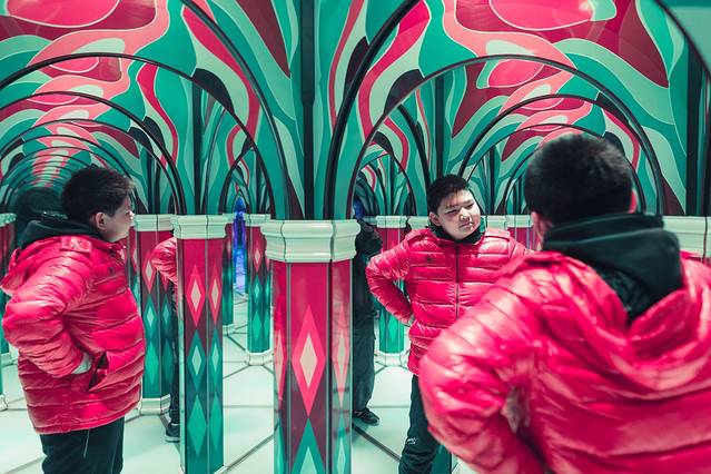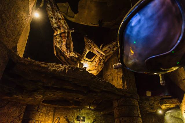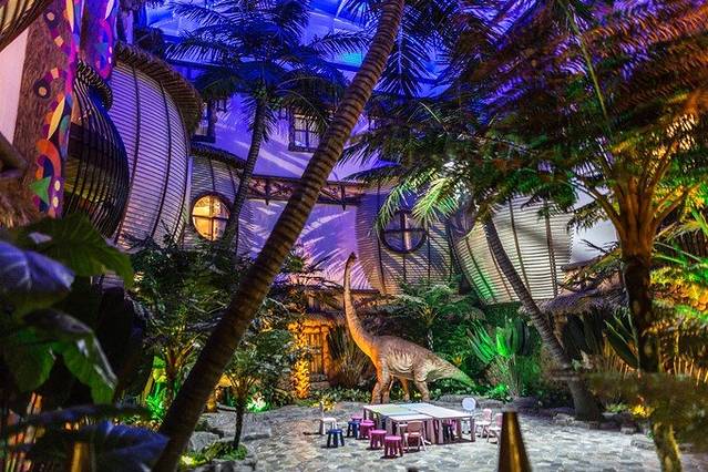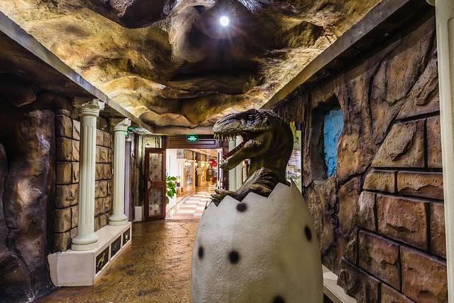 门口的恐龙人俱乐部,可以玩,可以吃。我们入住的时候酒店还送了几个项目的体验券,小小白自己选了一个镜子迷宫。