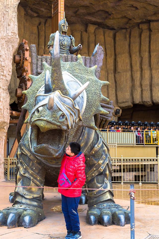 飞越恐龙山,这是一个室内过山车,也是一个乘坐体验仅次于过山龙的过山车了,小小白此刻的胆子已经爆棚,非要试试不行,但是这个还得非拉着我试,我实在头皮发麻,过去一问,工作人员说还要排队一个小时,我以太浪费时间为由,赶紧带着他重坐了一次雷龙过山车。