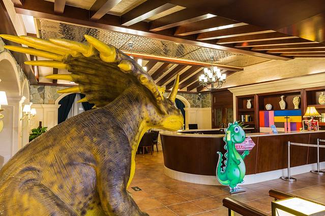 恐龙园的外围园区叫做迪诺水镇,处于核心位置,就在中华恐龙园的入口处,来恐龙园的吃住购物全部都在这里。我们早早预定了恐龙主题酒店,好运气一直伴随,原来预定的只是双床标间,前台的小姑娘可能看着小小白实在是太大太占地方,免费就给升级了一个家庭间。