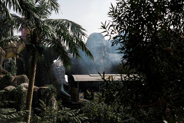 金刚看着挺猛,又喷火又冒烟,还时不时发出怒吼,但是动作相当温柔,比较适合低龄小朋友去体验一下的。