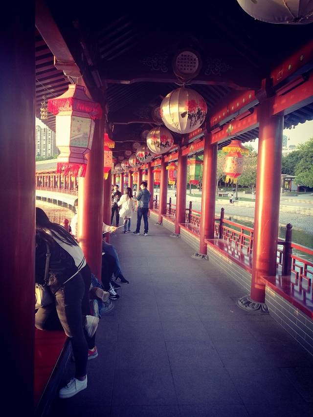出了车站先去往酒店休整,置放行李。沿途之中忽然发现市里的天桥都是仿古风格,护栏也都用雕栏修饰并涂以红釉漆作古,不禁感慨西安人对文化的敬重与传承。