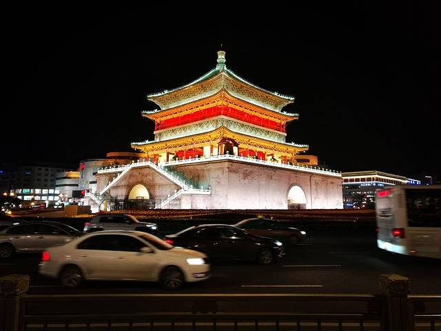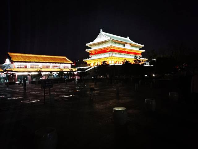 酒足饭饱已是夜里近十一点了,便开始返程。途径钟鼓两楼,才发觉开启夜灯之后的两楼更显富丽堂皇之态。