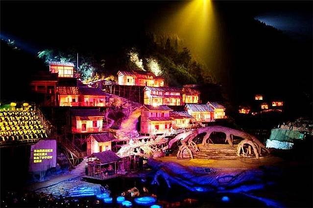 下山之后在山脚看到了《天门狐仙——刘海砍樵》的剧场,是一个露天舞台,以整个天门山为舞台背景。感觉会很不错。询问了客栈老板,她也很推荐,我们果断决定去看,门票也是让客栈老板帮忙预定的,包接送还有优惠!哈哈哈哈,客栈老板成了我们这次旅行的远程向导,有问题问她随时能帮我们。太给力!表演是晚上8.点20开始的,我们下天门山之后回客栈附近吃晚饭,快到时间了再坐车进去。这场音乐舞台剧,山水实景演出,场景很宏大,由中国实景演出创始人梅帅元执导,享誉世界的华人音乐家谭盾担任音乐总监。绝对是一场视听盛宴。去张家界的朋友,墙裂推荐去看。看表演的时候只带了手机,没拍什么照片。