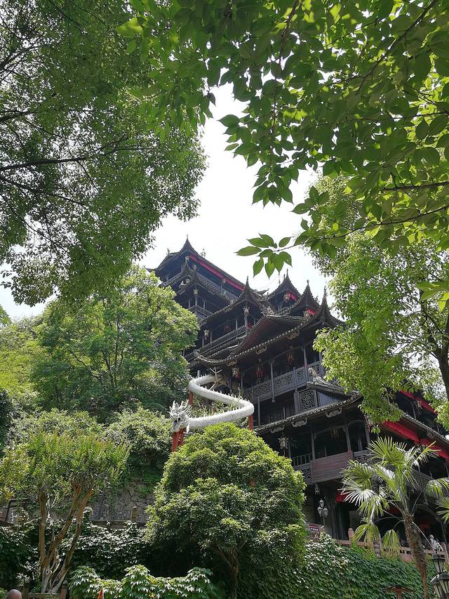 前三天都是看的自然风光,最后一天不想那么累。睡觉睡到自然醒,吃了中饭才去玩的,就在市区溜达溜达,我们对历史文化这方面也很感兴趣,去了张家界土司城,出门前让老板定的,有优惠!从客栈打车过去10块钱。游玩时间2小时。主要了解湘西土司文化和少数民族的民俗风情。城内的九重天吊脚楼被载入世界吉尼斯世界纪录,认定其为目前中国最大、最高、最完美的木质结构吊脚楼。整栋楼没有使用一颗钉子,到现在还保存完好,不得不佩服古人的智慧。逛完土司城之后打车去了张家界市中心,大庸府城,中商广场逛一逛。张家界市区真的好小。中饭吃得晚,晚上直接吃的夜宵——小龙虾,来湖南怎么少得了这个,虽不比长沙的口味正中,吃一次还是可以有的。客栈老板推荐的“老南庄”,味道还不错哟。吃完之后正好在河边散散步,小龙虾对面是号称全球最大的酒吧“云顶会”,我们没进去,吃完夜宵散完步就回去睡觉了。