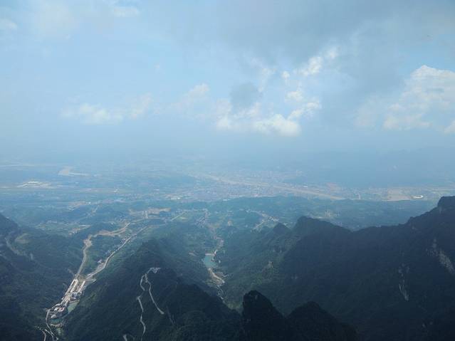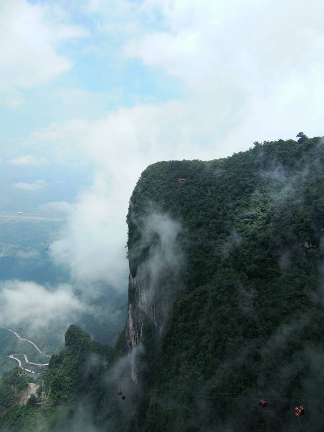 坐索道上天门山,快到山顶的时候回头一看,真的上天了