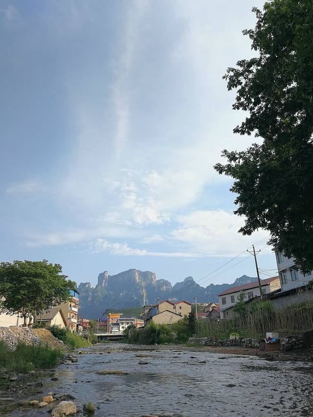 客栈旁边的小溪,可以看到天门山