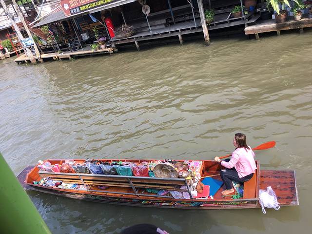 第二天我们选择了美攻铁路和丹嫩水市,一早退房行李寄酒店,玩的地方离我们住处两个小时,我淘宝订的一日游,一人7.80把,光路费无推销可以定,绝对比打的要划算的多!六点出发,美攻的莲雾我买了五个折人民币两块几毛[呲牙]那里水果太太便宜了,去了一定要多吃点,水市也便宜,那里的椰子冰强推,我一下吃了两,船上的比案上的好吃!返回酒店差不多下午两点,休息会,高兴附近稍微转一下,去机场,我订的20.30的飞机,有点晚了,可以把时间挪到18.30,我们怕堵,蛮早就去机场了,郎曼机场记住,机票是不含托运的,我没注意现场是买的,比预先定贵了200把,就去问路,打什么单子,填也是需要用点英语的,到托运环节碰到个会中文的,哎哟!激动啊[捂脸],我飞机都没碰到误点,接送机都是现场订的,过程还很顺利,别以为普及贵啊,我觉得曼谷比普及贵!当然水市这些离中心比较远的很便宜,考山路同样的seven eleven拿蛇毒面膜作对比单瓶要个贵4,50人民币,我脑残了,急吼吼的背了青草膏去普及,还发现买贵了[捂脸]