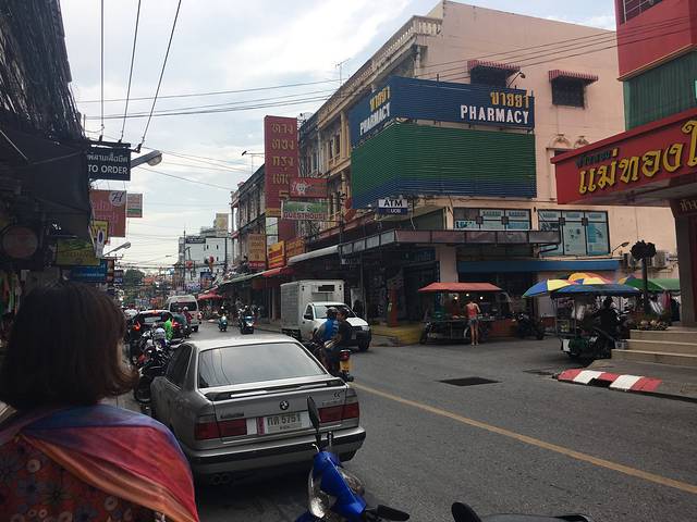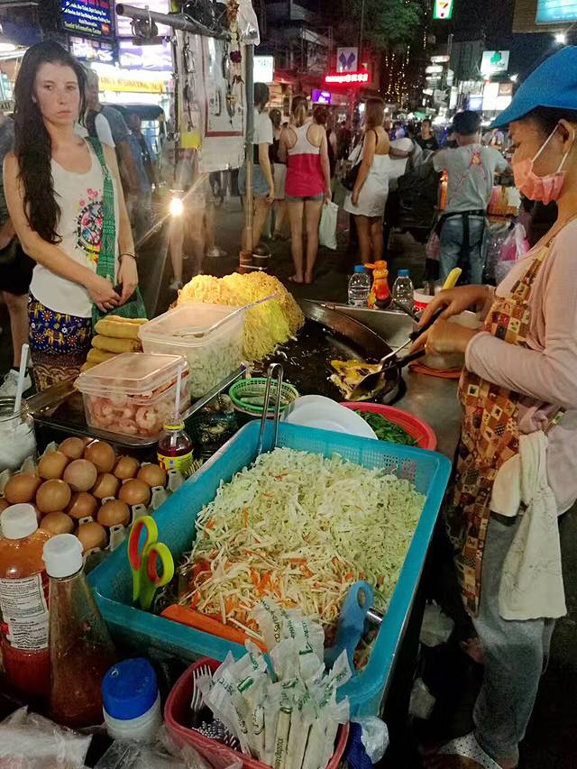 留两个小时回酒店休息下,晚上我们玩的湄南河和考山路夜市,也搞笑呢,跟个司机交流去湄南河坐船的地方,完了曼谷那个河边n多个坐船的地方,我才花了四块钱,那船把我从河这边运到河对面[流泪],吃了个椰子冰,看了看那破河[流泪]又花了四块把我们运回来,坐那个突突车去考山路,那个车水很深,乱喊价,已经下载好百度地图啥的对照公里数,不会比苏州贵的,贵了就砍呗,到处都是反正!考山路一路吃过去,也没什么太吸引我的。