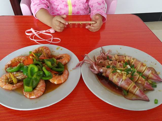 这顿花费100多,鱿鱼和虾都是原汁原味,还有一道鱼汤和一道青菜忘了拍照,光顾着吃,太饿了~