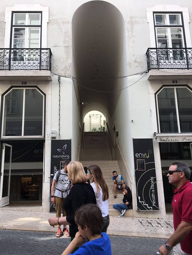 看完贝伦回来我们才倒回去圣胡斯塔升降机,好多人排队。我们看到攻略说有路可以走上去但没找到入口,碰巧遇到一位葡萄牙阿姨告诉我们可以走上去,我就顺口问了入口在哪,阿姨人非常好还带着我们去入口处。有两个就在商业街上坡路上,还有一个在上坡第一个路口右拐,然后直走第一个路口再右拐,进去就会看到有楼梯和一个露天咖啡厅,上去以后就有天桥通到升降机了然后继续上楼梯去观景台。完了以后可以坐电梯下去,交通卡也是可以用的,如果是买了天票的就可以直接刷卡拉。