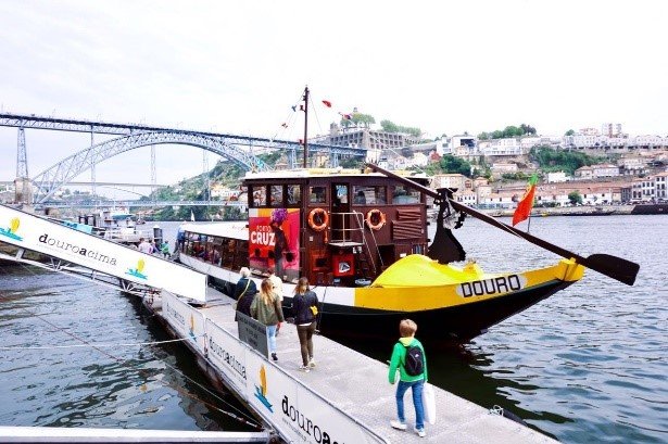 这是对岸一个挺有特色的酒庄sandeman,他的商标图案是一个披着黑斗篷的人,可以进去参观,也可以在他门口喝两杯。我不能喝酒所以就在门口点了两杯鸡尾酒尝尝。酒庄旁边都有好多卖酒的店铺,可以买点波特酒回去尝尝