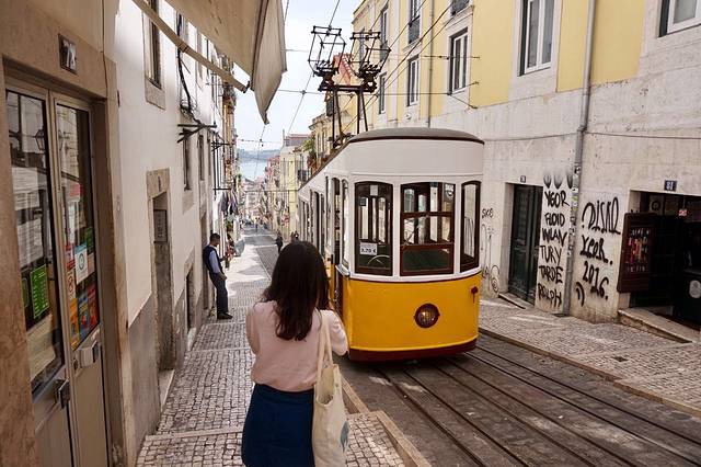 坐完比卡升降机(BICA) 我们就坐28路电车去阿尔法玛区了