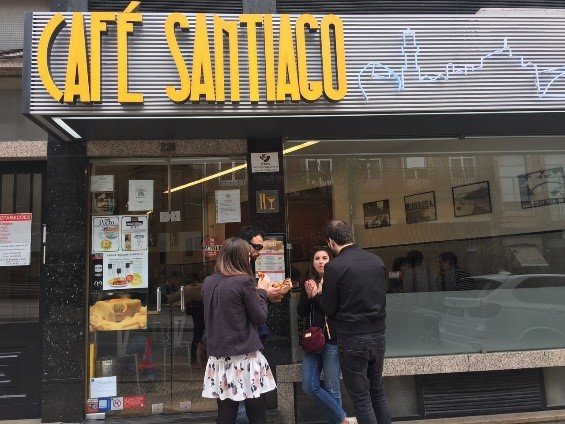 波尔图的三文治据说挺出名蛮有特色的,于是我们中午去了攻略上说最正宗的那家店,叫 CAFE SANTIACO,确实如攻略上所说的,这家旁边有一家几乎一模一样的店,但是店名上有一个红色的F,不要进错了,还有不少人排队呢,反而正牌还少人点哈哈。我们点的就是最传统的那种,正常的一份是正方形的,如果两个人不想一人一份可以点一份然后加division(加1欧) 这样出来的就是三角形的半份。里面料挺多的有牛肉,香肠培根鸡蛋什么的挺饱肚的。店里的一个服务员小姐姐特别漂亮,长的可甜了我好喜欢,跟victor 叨叨了好多遍哈哈。
