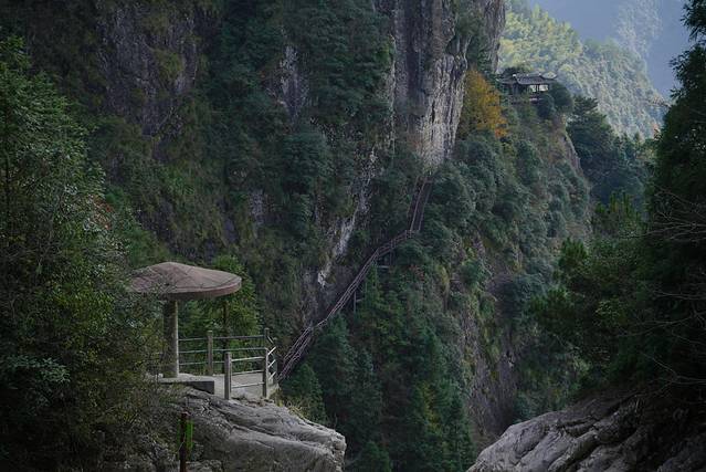 吃完午饭后,我们稍作休息了一会,大概下午一点左右出发去云中大漈森林公园。这边我想说一下,“漈”就是瀑布的意思,“大漈”顾名思义就是大瀑布了,又因为景区位于海拔1030米的中高山盆地内,四周群山环绕,烟雾弥漫,所以远远看去就像是大瀑布在云中飞流直下,景色非常宜人。