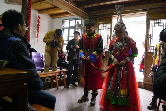 午饭之后,我们在畲乡之窗体验了一次当畲家“新郎”“赤郎”的乐趣,感受到了浓郁的畲族风情。赤郎就是指送彩礼这天男家带去女方做菜的厨师。体验完这整个婚礼过程,给我的感受就是新郎娶媳妇,为啥受罪的都是赤郎!一个字,惨。