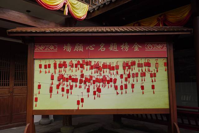 在天井的右上方有个金榜题名心愿墙,很多来旅游的游客,特别是学生都会在上面写一些学习,成绩排名的一些心愿。