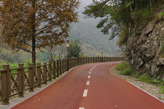在绿道的右口,有个大型的停车厂,可以接待旅游团或自驾 游的朋友。绿道的基础设施也是比较好的,路面比较宽,大概6-8米吧,绿道的护栏和路灯极富畲族特色,因为绿道的另一边是靠山,加上原生态,所以负离子含量很高,可谓是天然的肺部清洗器。这些设施与得天独厚的山水生态景观融为一体,漫步其中,什么都不愿想,什么都想不起来,天地之间仿佛只有我自己。晴好的假日,带上家人,或约几位好友,去畲乡绿道散步或骑行,早晨骑车在这条线路上还可以感受露水的清新,人与景融为一体,在运动中欣赏山水,在休闲中感受亲情,是非常好的旅行方式。