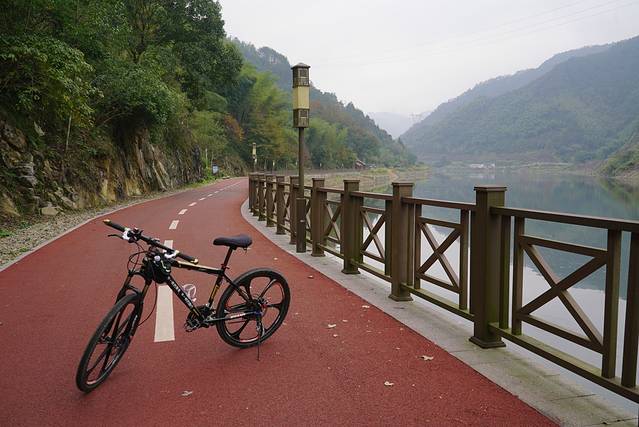 今天我们来的第一个景点叫畲乡绿道,一条生态运动的骑行道。畲乡绿道起于景宁 鹤溪溪口 ,止于大均畲乡之窗4A景区,全长约13公里,如果要骑完一个来回大概需要2个小时。绿道的一边是湖,另外一边是山,躁动的心在见到这蔚蓝湖水的时候便瞬间安静了下来,这湖水仿佛有一种神奇的魔力,让你情不自禁的爱上这里。