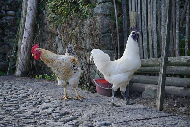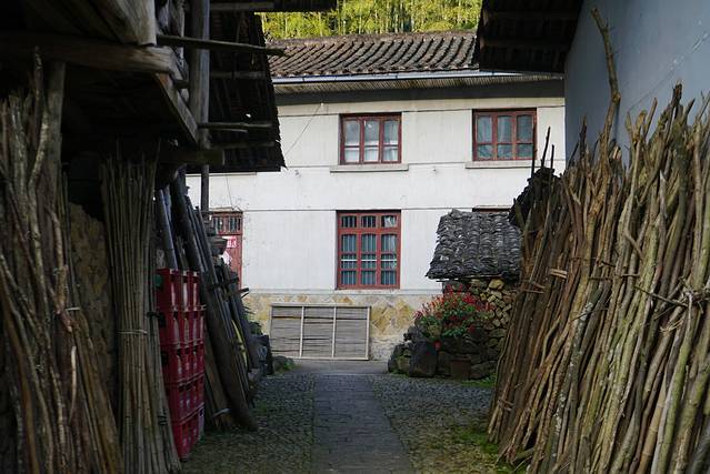进入村子之后,我们发现这个村子还是有一定的历史的,虽然有些东西比较现代化(随着社会的发展,为了生活更加方便,我觉得现代化的东西是必要的),但还是掩盖不住他们淳朴的一面,让人觉得很舒服,没有喧嚣,没有汽车喇叭声,非常的宁静。走在巷子里面,可以看到摆放整齐的竹竿,柴火,走在都是用石头铺起来的小道上,我们不用担心红绿灯,不用担心后面前面会不会来汽车,反而跟公鸡母鸡玩起来追逐游戏,非常的惬意。